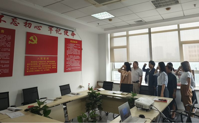 理论学习开始前,全体党员进行重温入党誓词交纳5月份党费。
