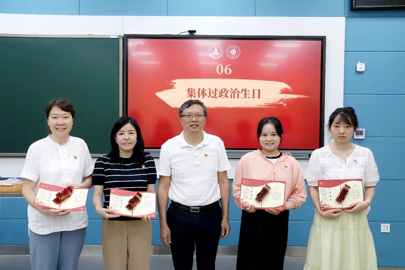 最后,覃红同志为党支部过政治生日的4位同志颁发贺卡并作总结发言。他指出,此次组织生活内容丰富、扎实有效,对于理解、学习习近平新时代中国特色社会主义思想提供了更多的依据。他强调师生党员一要加强政治学习,坚守初心使命;二要加强业务学习,做到典型示范;要加强实践学习,提升综合素质,为国家现代化发展重要问题积极建言献策。