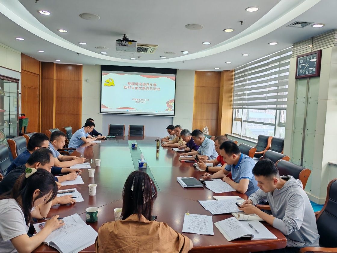根据上级要求和学校工作安排,4月27日上午,校园建设部党支部全体成员在中原楼六楼会议室开展了以“学思践悟优作风,凝心铸魂强党性”为主题的党日活动,校园建设部党支部全体党员参加。会议由支部书记胡海南同志主持。