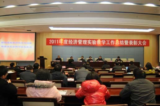 为了总结我校经济管理实验教学工作的经验和成绩,推动经济管理实验教学的改革与创新,加强实验教学队伍建设,提高经济管理实验教学水平,经济管理实验教学指导委员会联合经济管理实验教学中心于2012年1月4日上午在中原楼七楼会议厅隆重举行了我校2011年度经济管理实验教学工作总结暨表彰大会。出席大会的有学校领导杨灿明副校长,教务部刘茂林部长、经济管理实验教学中心熊胜绪主任、财务部鲁志荣部长、资产管理部王贞为部长以及工商学院、会计学院、财税学院、金融学院、经济学院和统计与数学学院的主要领导;出席会议的还有:第三届经济管理实验教学竞赛获奖教师及评委、2011年度经济管理实验教学研究项目主持人、经济管理实验教学中心和经济管理实验教学中心各教学区实验室的工作人员,以上与会代表共计八十余人。经济管理实验教学中心傅小勇副主任主持了会议。