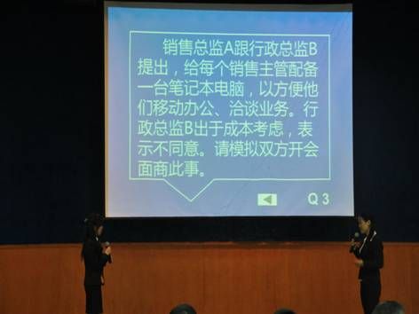 经历了前两回合的角逐,比赛的第三个环节“针锋相对”拉开帷幕,10位选手进行情景模拟,两两之间展开“小型谈判”,发挥职场公关的能力,而选手们的精彩表现也赢得在场观众的掌声。期间的“观众互动”中,在场的学生对德勤会计师事务所进行了咨询并得到相关人员的专业答复。