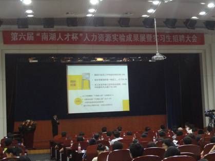 6月14日19时,第六届“南湖人才杯”人力资源实验成果展暨实习生招聘大会在我校文泉报告厅顺利举行。此次大赛由湖北省人力资源学会、我校工商管理学院和经济管理实验中心联合主办,E-HR协会和南湖人才开发公司共同承办。人力资源实验课程是我校实验精品课程,通过学生模拟创建公司,制定人力资源管理方案,并且借助比赛的形式,邀请全省人力资源管理专家和业界领袖进行指导和点评,使学生做到了理论与实践的结合,实现了实践育人的目的。经过初赛与半决赛的层层筛选,共有6支队伍晋级决赛。