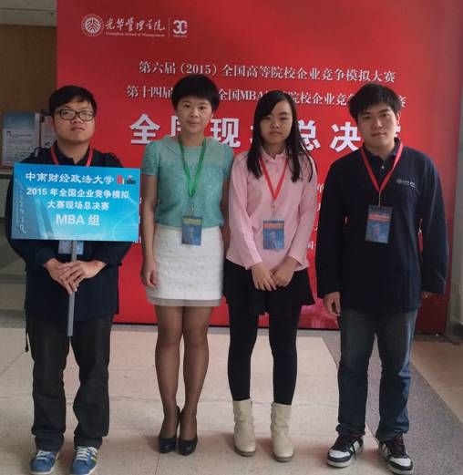 第六届(2015)全国高等院校暨第十四届(2015)全国MBA培养院校企业竞争模拟大赛全国现场总决赛4月30日在北京大学圆满落幕。经过2个多月初赛、复赛和半决赛的激烈鏖战,我校经济管理实验教学中心文汉宁老师带队、工商管理学院刘璠老师指导的由金融学院CFA1201班何伟杰、工商管理学院物流管理1201班瞿祺麟和会计学院1301班刘诗霖组成的“DH”团队顺利晋级MBA院校组全国16强,并在总决赛中夺得企业竞争模拟大赛MBA院校组全国特等奖。