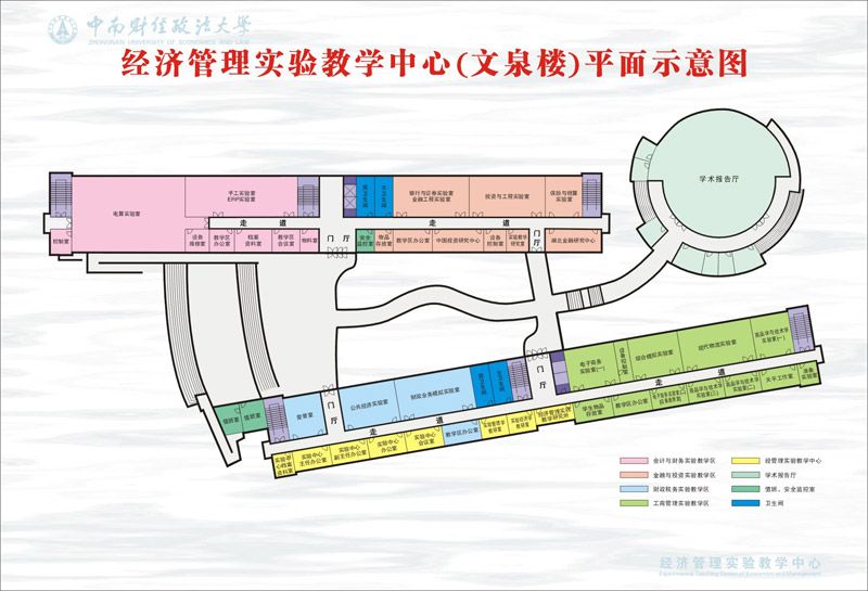 中心主体设在文泉楼,面积达 4100 平方米 ,各专业实验室按照功能分区,布局科学合理,中心还拥有一个可供 300 多人进行各种学术交流活动的多媒体报告厅,形成了与经济管理相关学科、专业相适应的实验教学与学术研究环境。