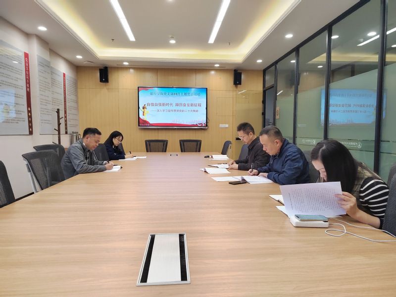 在党支部书记、院长聂鑫的带领下,全体党员重温入党誓词。之后,通过领学的方式,大家共同学习了《习近平:在中国共产党第二十次全国代表大会上的报告》、《习近平:心往一处想劲往一处使推动中华民族伟大复兴号巨轮乘风破浪扬帆远航》、《高举伟大旗帜创造新的伟业——热烈庆祝中国共产党第二十次全国代表大会开幕》、《开辟马克思主义中国化时代化新境界》。全体党员围绕活动主题,结合工作实际畅谈心得体会。
