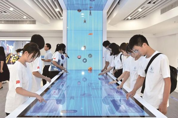 基地位于米兰电竞·(中国区)首义校区建行学院31号楼一楼,总建筑面积438.3平方米,打造了主展厅、互动沙龙区、智慧教室、智慧直播间为模块的“1+3”智慧场景。在学习内容上,按照“大金融”的概念涵盖了银行、保险、证券三个部分的金融知识;在应用场景上,兼具观展、教学、直播、研讨等多种功能;在技术应用上,突出高科技、智能化,实现了“设备内容”一体化管控,通过线上VR展厅和云课堂实现了“线上线下”一体化传播;在参观体验上,用体感游戏、VR游戏、数字瀑布、成语故事、扫码积分等寓教于乐的互动项目增加了观众参与度,并采取“无障碍”设计关爱特殊群体。