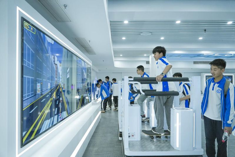 课程结束后,同学们又来到基地主展厅,在智能AI、模拟VR+3D等创新技术设计的线上课程中,沉浸式体验学习了金融知识。