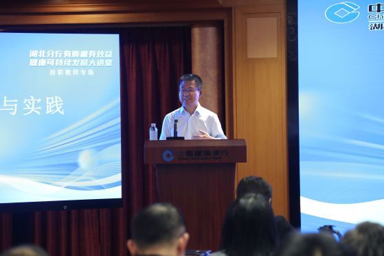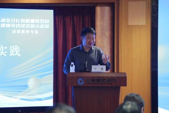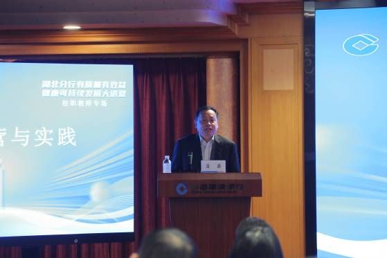 王锴对老师们顺利完成挂职工作及银校合作取得的丰富成果表示祝贺。他强调,深化产教融合是贯彻落实党的二十届三中全会精神的具体举措,建行作为国家发改委确定的首批产教融合试点企业之一,产教融合是总行与教育部战略合作的重要内容,湖北省分行举办的大讲堂活动正是深化产教融合的落实措施。他肯定了大讲堂开放、集中、持续的学习形式,他指出,本期专场活动有助于加强校企间的学习交流,破解各自发展难题,对双方都大有裨益。