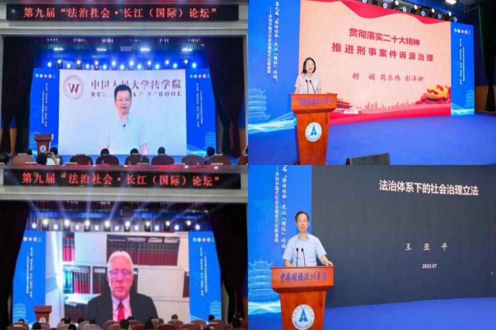 7月1日至2日,由中国行为法学会和我院主办的第九届法治社会·长江(国际)论坛——开创中国式社会治理现代化新道路成功召开。最高人民检察院、中国行为法学会、湖北省高级人民法院、湖北省人民检察院、湖北省法学会、中国刑事诉讼法学研究会、中国人民大学、北京师范大学、对外经济贸易大学、南京师范大学、海南师范大学、内蒙古财经大学、黄冈师范学院等学术界、实务界领导到会指导。
