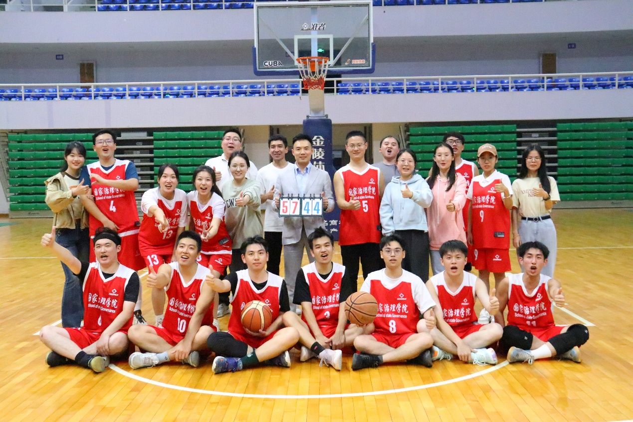 通讯员(蒋一鸣 摄影 车昕)风吹一片叶,万物已惊秋。2023年10月26日下午,国家治理学院新生篮球队在法学研究生新生杯的决赛中战胜劲敌民商法队,夺得冠军。国家治理学院副院长陈实、研究生辅导员吕瑞专门到现场观摩比赛,为全体队员加油助威。