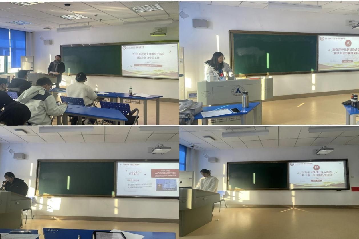 通讯员(蒋一鸣)为深入学习贯彻习近平新时代中国特色社会主义思想和党的二十大精神,切实加强党的政治建设,1月3日下午,国家治理学院2023级硕士研究生党支部在文澴楼204教室召开2023年度党支部组织生活会暨民主评议党员会议。研究生辅导员吕瑞老师参加活动,党支部书记章津玮主持活动。