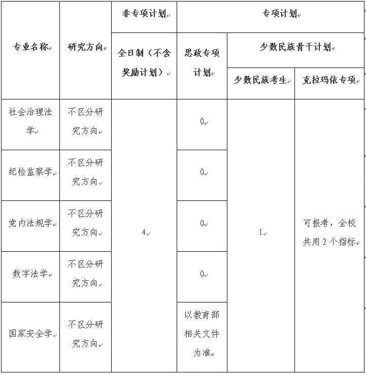 说明:克拉玛依专项报名人数如超过2人,则由研究生院组织专家进行审核、面试等工作,按考生综合成绩排序从高到低进行录取。