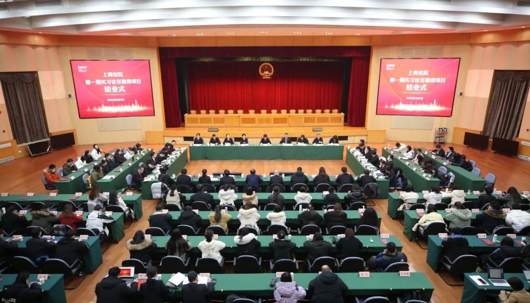 2月5日,上海高院召开了上海法院第一期实习法官助理项目结业式,为圆满完成实习任务的120余实习法官助理送行,我院2022级社会治理法学硕士研究生王可鑫、宋鑫参加结业式。