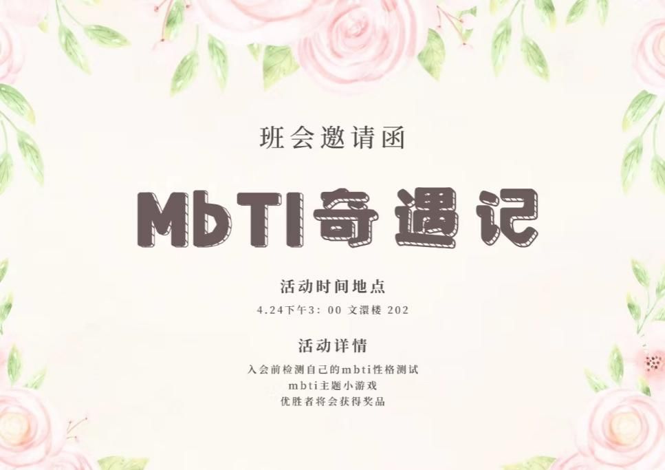 本次班会以当下热门的“mbti”为主题开展活动,新颖、有趣,在兼具娱乐性的同时也使大家学习到更多的心理知识,游戏环节起到了很好的破冰作用,交流环节同学们都勇于说出自己当前所面临的一些心理健康问题,以及自己应对心理健康问题的技巧和方法,在增进同学们互动交流的同时,也使大家了解到如何通过各种方法和途径来维护和提升心理健康。