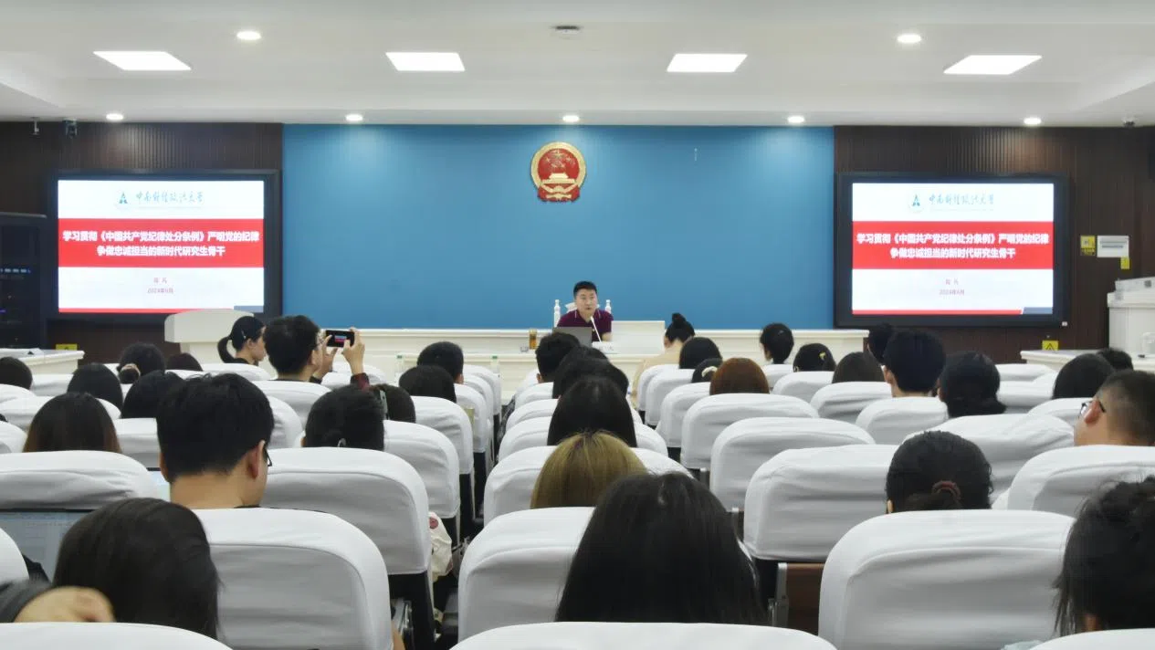段凡教授以《学习贯彻〈中国共产党纪律处分条例〉严明党的纪律 争做忠诚担当的新时代研究生骨干》为题作专题讲座。他首先从法理层面向大家阐明《条例》性质,介绍了纪律处分的具体种类以及监督执纪的“四种形态”;随后立足于高校学生干部及研究生党员骨干的身份特征,结合具体案例逐条讲解党的六大纪律——政治纪律、组织纪律、廉洁纪律、群众纪律、工作纪律和生活纪律。段凡教授指出,2023年新修订的《中国共产党纪律处分条例》,将习近平总书记关于全面加强党的纪律建设的重要论述转化为纪律要求,具有鲜明的时代特征,深化《中国共产党纪律处分条例》的学习,对于全面加强党的纪律建设,不断增强自我净化、自我完善、自我革新、自我提高能力具有重要意义。