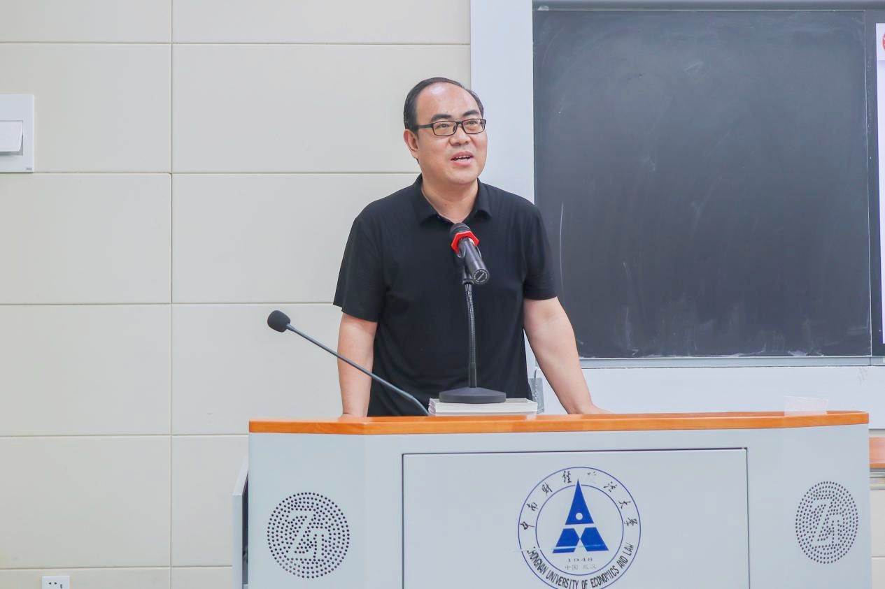 数字法学学科导师组代表李昊教授,介绍了数字法学学科的基本内涵和研究范畴。他表示,数字法学学科是顺应互联网、大数据、人工智能和实体经济深度融合的背景,由法学学科联合校内其他优势学科自主增设的二级交叉学科,而且是第一届招生,对国家治理学院有着重大的意义。他提醒同学们,学习数字法学专业,不仅要重视法学基础理论的学习,还应紧跟技术发展前沿,时刻关注数字技术、AI技术等前沿理论与实践发展,从而打破专业壁垒的限制,不断提升学科交叉融通的思维能力,全面提升解决数字法学领域解决复杂疑难问题的实践能力。
