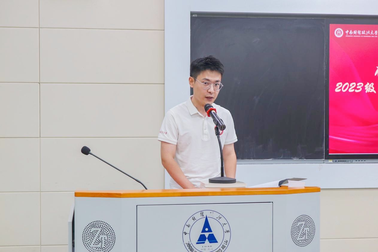 纪检监察学导师组代表缪国书副教授,回顾了我校纪检监察学学科建设的背景和过程,介绍了我校纪检监察师资团队、研究方向、课程体系设置,以及未来的学科发展规划。他指出,在全面从严治党和深化纪检监察体制改革的背景下,纪检监察学科建设和人才培养面临重要发展机遇,同学们未来发展前景十分广阔,他鼓励同学们牢牢抓住时代机遇,强化学科交叉意识,在扎实学好法学基础理论的同时,注重借鉴和运用管理学、经济学等学科理论和研究方法,深入开展学科交叉研究,为未来发展进步筑牢坚实的理论根基。