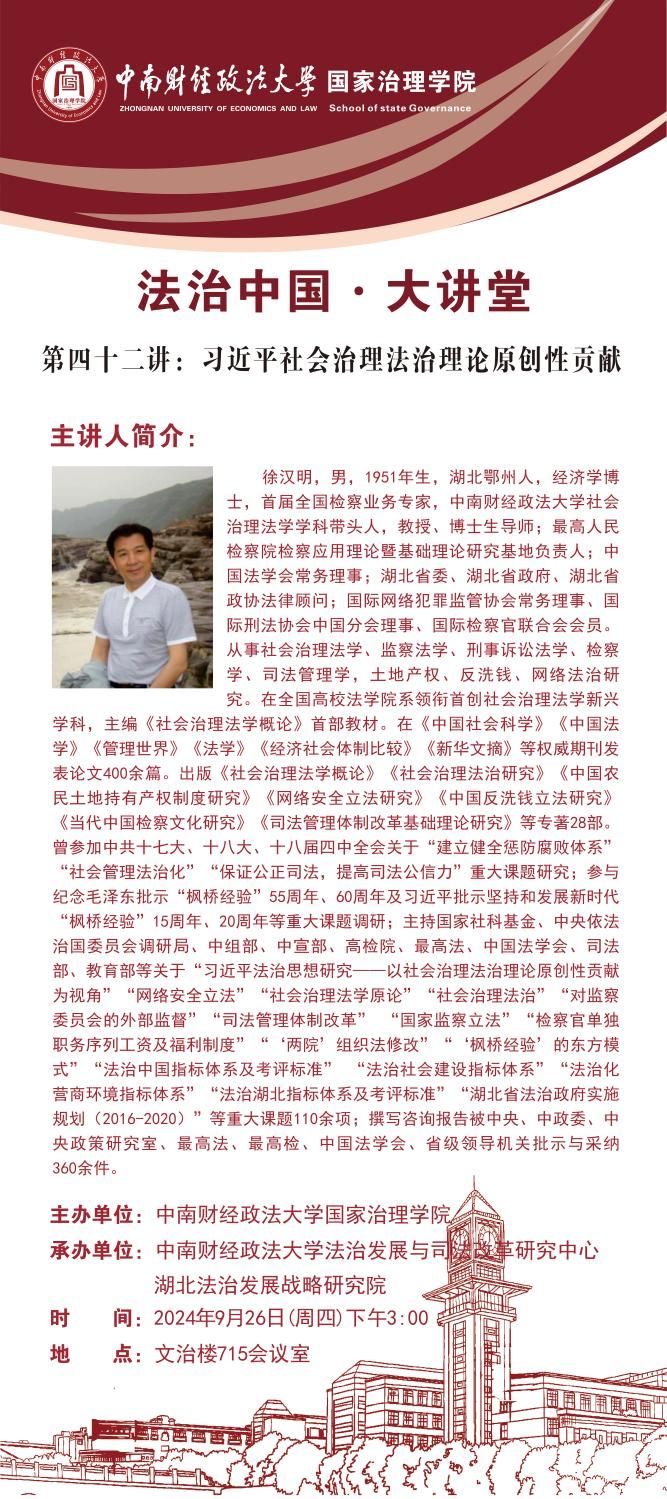 【讲座预告】“法治中国”大讲堂第四十二讲:习近平社会治理法治理论原创性贡献