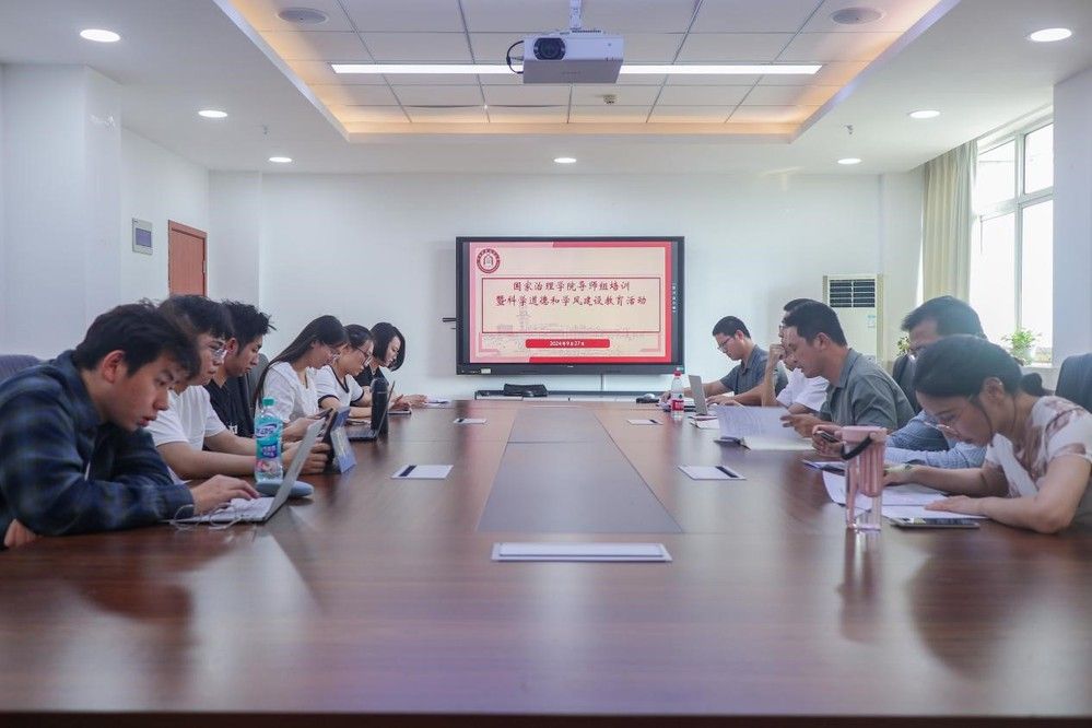 通讯员(于雯钰 舒雨诚)为大力营造良好的学术生态环境,切实加强研究生导师队伍建设,9月27日下午,国家治理学院在文治515会议室举办研究生导师培训暨科学道德与学风建设教育活动。学院研究生导师叶强、邵登辉、曾林翊晨,新入职青年教师张演锋、陈俊良,综合办公室主任李芳,研究生工作办公室主任吕瑞,以及硕博研究生代表参加活动。活动由吕瑞老师主持。