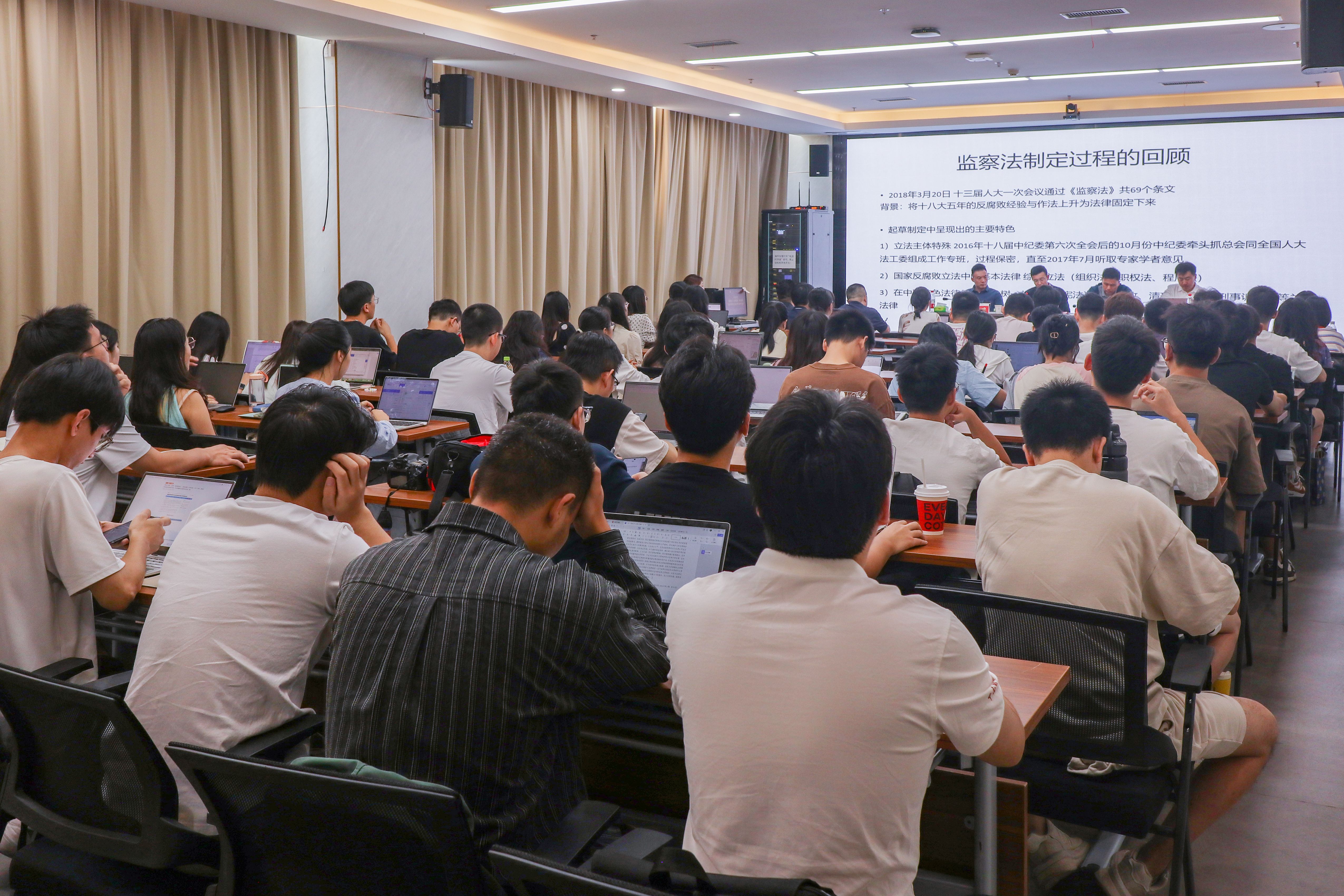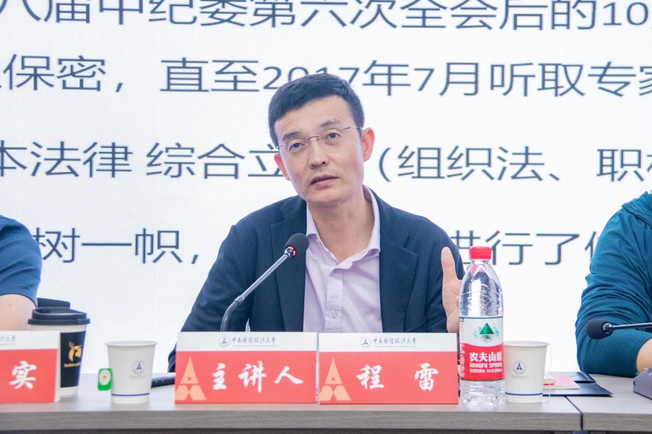通讯员(胡秦瑞 舒雨诚)9月27日上午,由我校研究生院、党委研究生工作部、研究生会主办,国家治理学院承办的“文澜大讲堂·新时代研究生思政金课”在法学科研大楼一楼党团活动室顺利进行。本场讲座紧跟时事,聚焦“《监察法》修改前瞻”主题,特邀中国人民大学法学院副院长程雷教授担任主讲人,北京师范大学法学院犯罪学研究所所长、中国犯罪学学会副会长赵军教授和中国政法大学诉讼法学研究院郭烁教授担任与谈人,国家治理学院副院长陈实教授担任主持人。我校纪检监察学科和诉讼法学科博士及硕士研究生参加讲座。