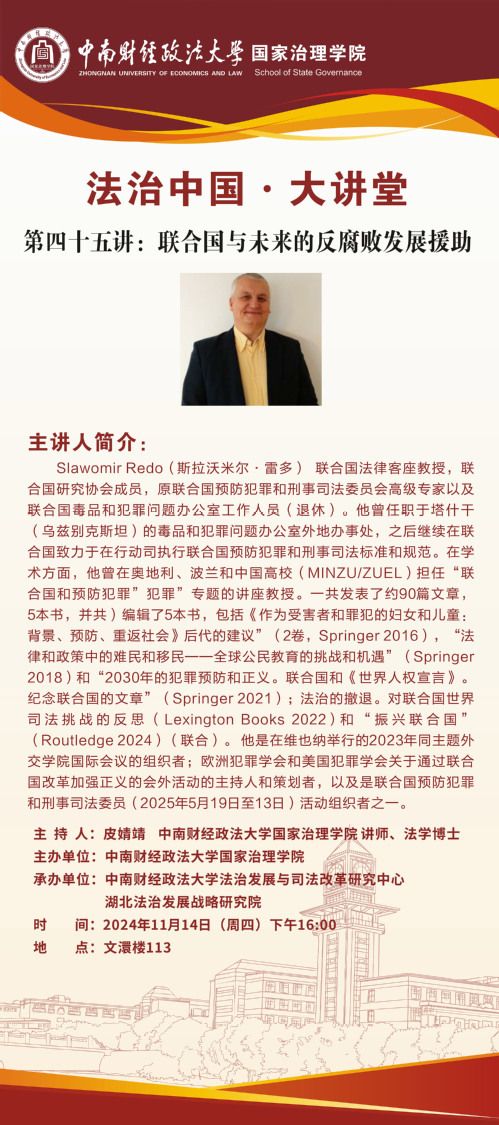 【讲座预告】“法治中国”大讲堂第四十五讲:联合国与未来的反腐败发展援助