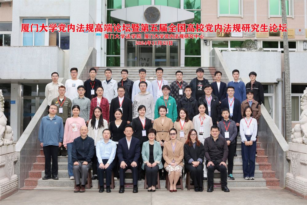 2024年11月23日,主题为“党的自我革命与党内法规的发展和完善”的厦门大学党内法规高端论坛暨第五届全国高校党内法规研究生论坛于福建厦门举行。我院2023级党内法规学硕士研究生车昕、王孝天受邀参加本次论坛,并在第五单元“党内法规备案审查制度建设与理论创新”中,分别就其撰写的文章作主题发言。