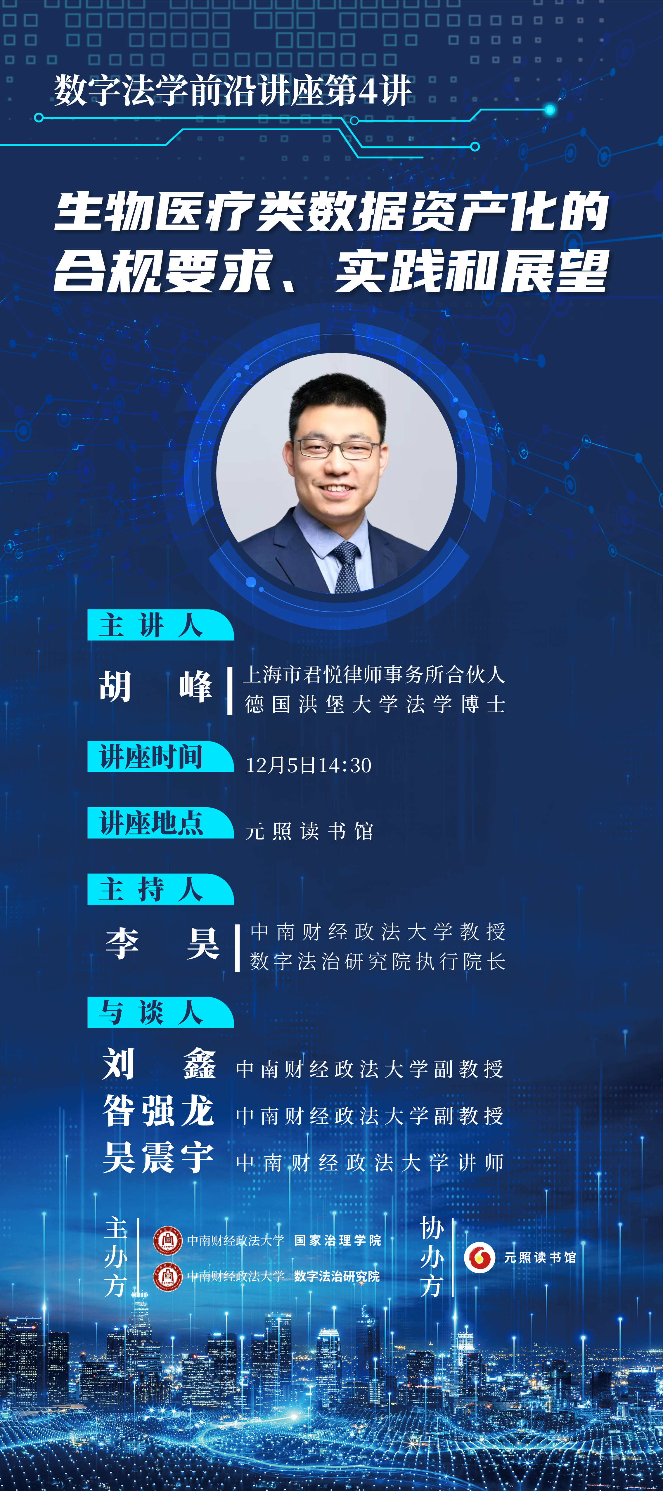 【讲座预告】数字法学前沿讲座第4讲:生物医疗类数据资产化的合规要求、实践和展望