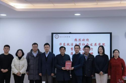 通讯员(杨志航 车昕)为加强新兴学科建设的经验交流,12月5日下午,华东政法大学社会发展学院党委副书记、院长李峰教授,党委副书记、副院长彭扬教授,法律与社会研究中心执行主任李俊教授,学科秘书鲍超一行来访我院调研。国家治理学院副院长陈实教授,社会治理法学学科带头人徐汉明教授,国家安全学学科负责人童德华教授,法理学、法社会学副教授龚春霞,社会治理法学副教授叶强,综合办公室主任李芳等参加座谈会。陈实副院长主持本次会议。