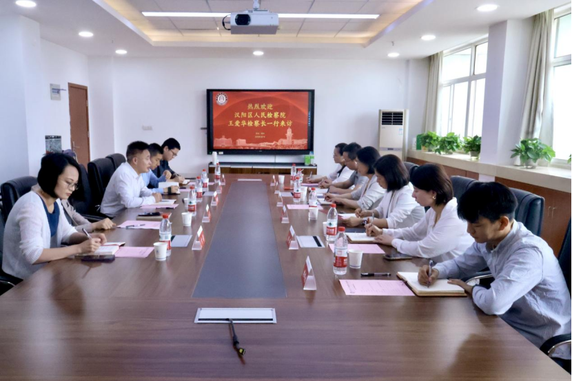 通讯员(蒋一鸣 舒雨诚)5月7日上午,汉阳区人民检察院党组书记、检察长王爱华,党组成员、政治部主任李瑛,第六检察部主任李炜等一行6人来访我院,在文治楼515会议室与学院领导班子进行座谈交流,共商推动双方高质量发展的检校合作事宜。纪检监察学院(国家治理学院)院长童德华,副院长陈实、刘杨,综合办公室主任李芳,研究生工作办公室主任吕瑞参加座谈会。童德华院长主持会议。