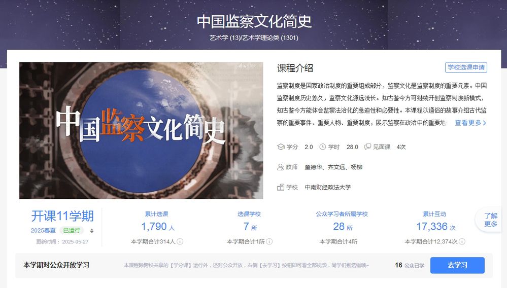 坚持服务监察学科建设发展的宗旨。陈列室充分体现高校以人才培养、科学研究、社会服务、文化传承创新和国际交流合作的五大学科职能,形成了“五位一体”的廉洁教育新格局。在建设陈列室过程中先后出版了《中国监察文化简史》《中国监察法治化的思想脉络与实践探索》《党纪处分的体系性研究》等系列教学教材,发表了《纪检监察学科建设的路径选择》等文章;培育了一支纪检监察团队,以及一批从事该工作的研究生;同步推出了《中国监察文化简史》慕课,截至目前已开课11个学期,选课高校7所,公众学习者所属学校28所,累计选课近1800人次,互动1.7万余次。