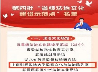监察文化与法治陈列室入选湖北省第四批“省级法治文化建设示范点”名单