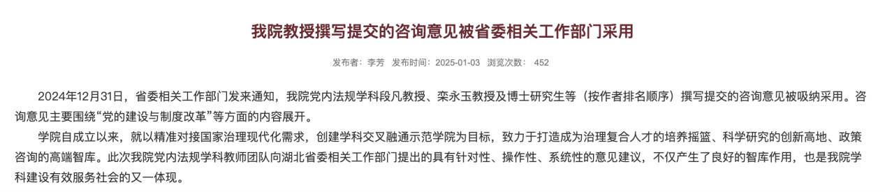 我院教授撰写提交的咨询意见被省委相关工作部门采用