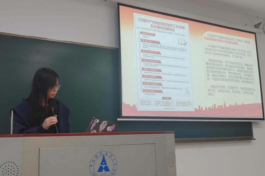 陆梅瑜同志则带领大家学习了《中国共产党基层组织选举工作条例》和《中国共产党普通高等学校基层组织工作条例》的核心内容以及换届纪律要求。她详细介绍了两个《条例》的主要框架、修订重点和重要意义。通过学习,支部成员对基层党组织选举工作的原则、程序、纪律要求有了更清晰的认识,对高校基层党组织的职责使命有了更深刻的理解,为后续规范开展支部换届选举工作、严肃换届纪律打下坚实思想基础,也为迎接学校第五次党代会做好准备。