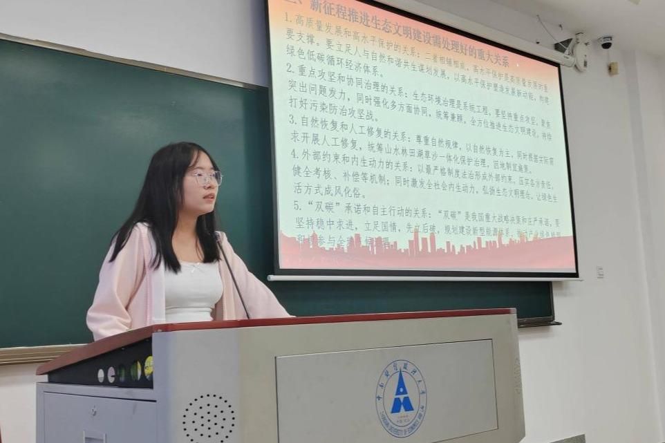 冯诗敏同志聚焦生态文明建设,领学了习近平总书记在全国生态环境保护大会上的重要讲话精神。她系统介绍了新时代我国生态文明建设取得的历史性成就,并重点阐释了新征程上需要处理好的“高质量发展和高水平保护”等重大关系。她指出,建设美丽中国是全面建设社会主义现代化国家的重要目标,作为青年党员,要深刻认识生态文明建设的重要性,积极践行绿色低碳生活方式,为绘就人与自然和谐共生的现代化画卷贡献青春力量。