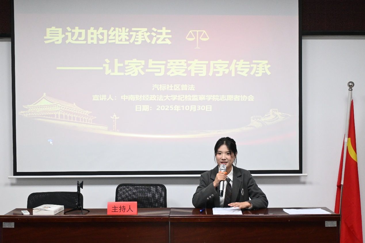 (通讯员 王纪泽 方钦涛)为弘扬法治精神,服务基层群众,提升社区居民的法律素养和维权能力,10月30日上午,我院“纪见未来”志愿服务队走进汽标社区,成功开展了一场以“身边的继承法——让家与爱有序传承”为主题的普法志愿服务活动。