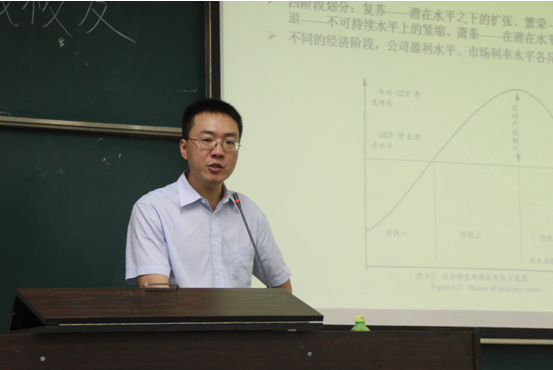 (通讯员:李磊)9月23日晚7:30,基金经理张戈在文添楼105教室为母校学子带来了一场主题为宏观经济研究在证券市场中的作用—兼谈证券行业的就业机会的讲座。出席本次讲座的有经济学院副院长罗良文教授,经济学院副教授林相森老师,此外,经济学院研一、研二学生纷纷慕名而来,享受学术熏陶。本次讲座由副院长罗良文教授主持。