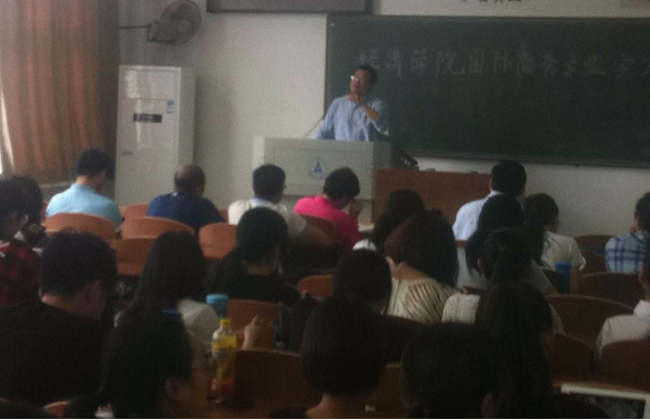 (通讯员:王逸凡、覃秋禾、夏昕晔、郝庆诚)2016年5月5日,经济学院国际商务专业2013级实习动员大会在文澜307教室召开,经济学院教学副院长李小平老师、国际经济系主任陈浩老师、谭理老师、杨晓军老师、高红贵老师出席本次大会,老师们就2013级同学即将面临的暑期实习进行积极动员,并详细解答同学们反映的问题。 陈浩老师主持本次动员大会,他强调:“同学们在大学期间的学习有三个主要部分,课堂学习、毕业论文和实习;所以实习和前两者同样重要,同学们一定要认真对待。”