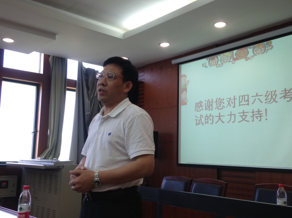 2016年6月16日下午14:30于文泉楼南经济学院206会议室召开了全国大学英语四六级考试监考员培训会,莅临此次考试培训会的领导有教务部部长刘仁山、教务部副部长王良圣,本次会议由经济学院党委书记武身汉主持,教学秘书柯萍老师主讲,经济学院全体监考老师出席本次会议。 培训会伊始,武身汉书记简单介绍了召开本次培训会的意义和目的,并感谢各位老师对本次四六级考试工作的大力支持。