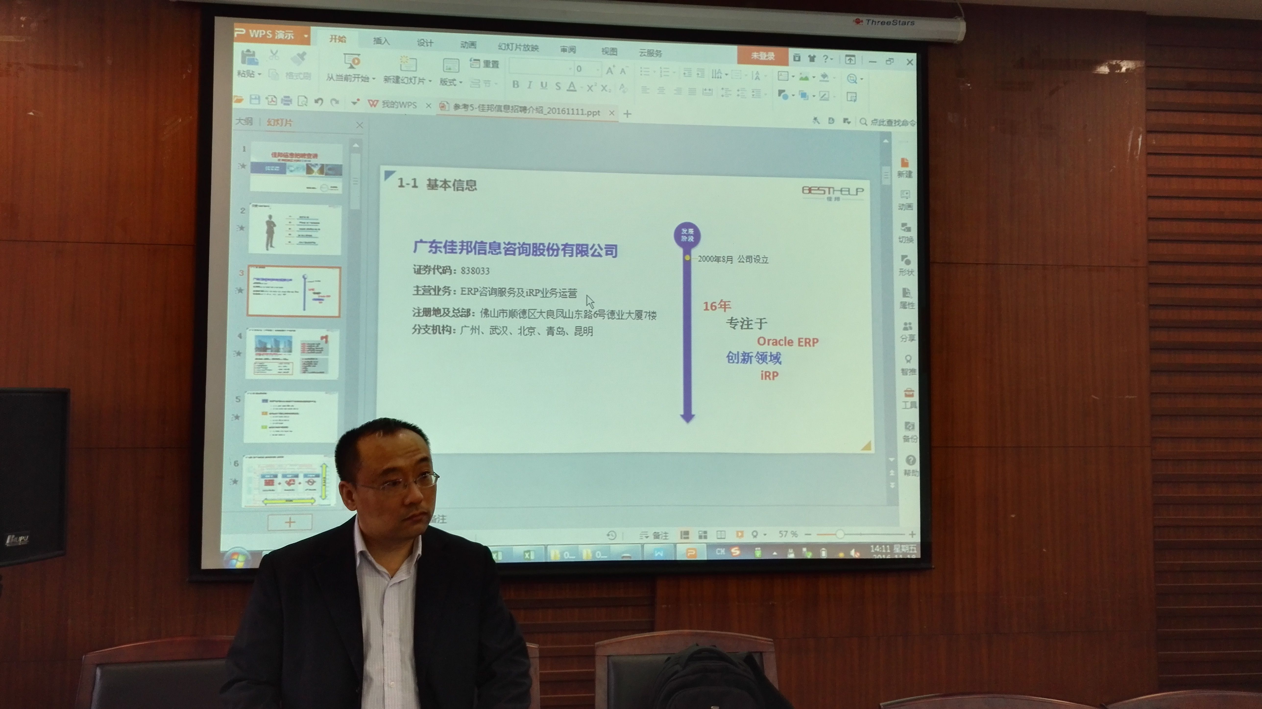 为我院毕业生就业着想,应国际经济学系主任陈浩教授的邀请,在院学工部孟庆红老师安排、罗慧敏老师组织下,18日下午2:30在文泉楼南206经济学院会议室,我校杰出校友、我院毕业生、广东佳邦信息咨询股份有限公司代表元露丰高级顾问来我院开展招聘活动。