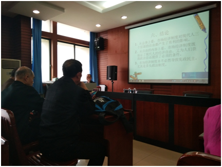 2017年4月21日14时30分,上海社科院《学术月刊》副主编王胜强教授在经济学院206会议室为我院师生做了主题为“市场经济与自由——经济思想史的考察”的讲座,讲座由经济学院副院长罗良文教授主持,我院部分教师、博士生及研究生参加了本次会议。