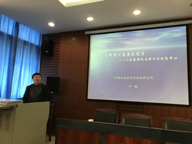 2017年11月2日至4日,我校“文澜学者”讲座教授、著名经济思想史学家叶坦以“月印万川与史无定法——以吴承明先生的方法论为中心”、“源流之说与第五自信——从2017年诺贝尔经济学奖说起”、“经世济民与内生变迁——‘中国经济学’寻根”、“学术转型与中西互动——基于中国经济学术史视域”为题,为我院师生开展了为期三天的系列讲座。经济学院副院长罗良文教授介绍了叶坦教授在经济思想史领域的突出成就和贡献。