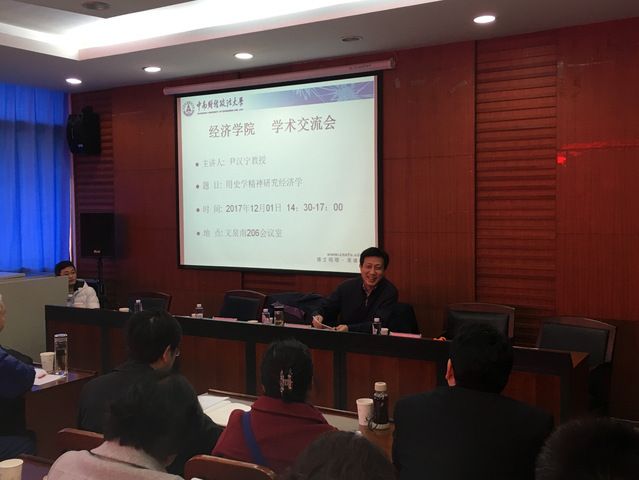 揭牌仪式后,尹汉宁教授为前来参加活动的经济学院、法学院及财税学院的老师和同学们做了一场激情洋溢的讲座。尹教授结合华为成功的例子,提出创新是中国供给侧结构性改革的重中之重,并把我国与西方国家进行对比,突显出我国社会主义市场经济的发展优势。尹教授重点讲述了上个世纪60年代苏联编写《政治经济学》教材的过程、马克思主义中国化发展历程以及新民主主义哲学社会科学的三次论战,指出西方资本主义经济体系已开始出现根本性问题,我国运用唯物史观的方法建立符合中国国情的政治经济学理论体系迫在眉睫。最后,尹教授用史学精神对社会主义经济发展的理论与实践进行系统的梳理和总结,提出中国特色社会主义政治经济学的三大理论支柱:一是体现以人民为中心的发展思想,把人作为经济学理论体系的中心,作为经济学分析的出发点、切入点和落脚点;二是在社会主义经济条件下真正发挥好市场配置资源的决定性作用;三是用社会主义的理性市场经济的制度安排超越传统社会主义计划经济的短缺性,超越西方自由市场经济的盲目性、周期性波动和过剩经济。