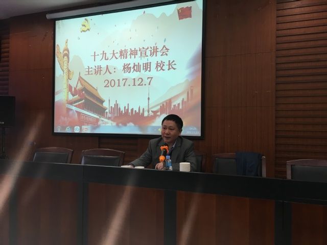 2017年12月7日下午,杨灿明校长及经济学院全体教师在文泉南206会议室举行“十九大精神宣讲会”,会议由院党委书记武身汉主持,杨灿明校长主讲,经济学院全体教师出席。