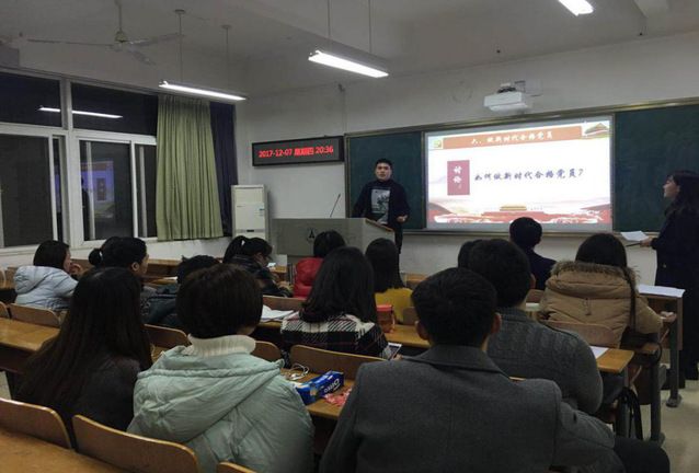 (通讯员夏欢)2017年12月7日19点30分,经济学院2016级研究生党支部12月主题党日活动于文添110室顺利举行,本次活动主题为“学‘新思想’,学‘新党章’,做新时代合格党员”。本次活动由支部书记刘怡君主持,支部共22名党员参加了本次活动。