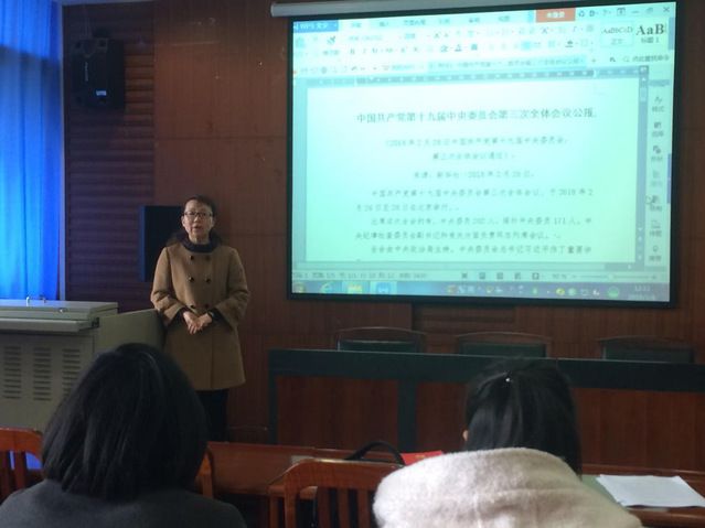 接着,孟老师结合“学习贯彻党的十九届三中全会精神”主题为两个支部讲党课。