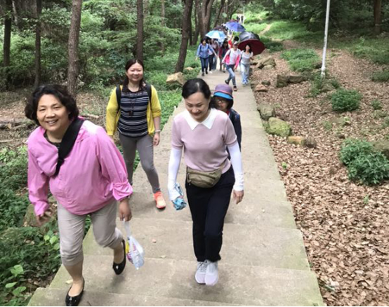 上午8点20分,老师们在文泉楼前集合,乘车前往八分山森林绿道。9点20分,老师们顺利到达八分山森林入口处,稍作休整后便开始了“丛林寻宝”比赛。本次比赛要求老师们按照八分山绿道导向牌依次前往步云亭、观景亭、怡然亭、子午石和慈云寺,每个亭子周围都有带有经济学院文化元素的词语标志,老师们需要寻找“创建”“和谐”“一流”“经济”“学院”五个标志牌,并拍照发至微信群进行打卡。最先收集完五组词语的个人将获得第一名,活动结束后取前十名的老师们予以精神奖励。