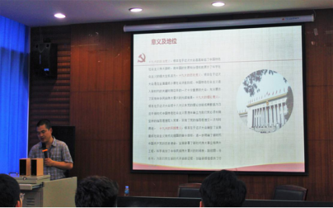 (图3:詹万明副书记结合PPT讲解十九大意义)