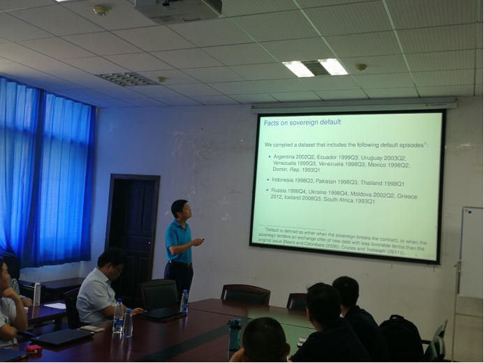 由米兰电竞·(中国区)经济学院举办的2018年第9期“经济中南”学术研讨会于6月30日上午在文泉南楼207会议室顺利举办。此次研讨会邀请到了四位四位在学界的优秀校友,分别为罗长远教授、章奇教授、罗楚亮教授和冯志刚教授。University of Nebraska的冯志刚教授大家分享了他的最新工作论文“Sovereign Defaults: Macroeconomic Activity and Political and Financial Frictions.”。其中,来自Western Michigan University的James. Hueng教授,经济学院的王爱君教授、马强文博士、王啸华博士、周强博士和苗双有博士等,工商管理学院教师李敬子副教授,以及部分博士生和硕士生参加了本次学术研讨会。