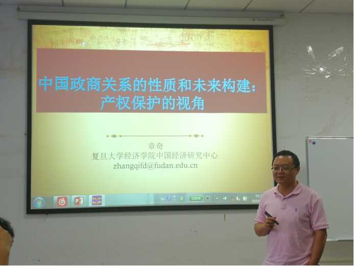 章奇教授的研究方向为政治经济学、制度经济学和发展经济学,其研究比较接近中国现实问题。首先,章教授通过中共中央、国务院出台的相应政策引出新常态下中国政商关系的重要性;其次,章教授详细介绍了中国政商关系的复杂性、新常态重塑政商关系的背景和逻辑,指出新常态重塑政商关系对产权安全具有较大的意义;再次,章教授尝试从种不同性质的政商关系和表现形式来理解中国的政商关系,重点介绍了官商勾结型和官商合作型的差别;最后,章教授通过逻辑分析对中国新型政商关系提出了相应政策建议。