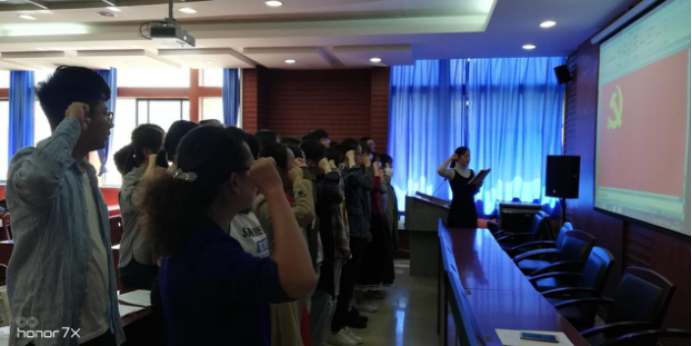 在鲜红的党旗下,全体党员,举起右手、握紧拳头,庄严宣誓。通过组织党员重温入党誓词仪式,使同学们牢记共产党员的政治责任和历史使命,不断保持共产党员的先进性,以更加饱满的热情投身各自学习工作,切实发挥共产党员的先锋模范作用,永葆共产党员的政治本色。